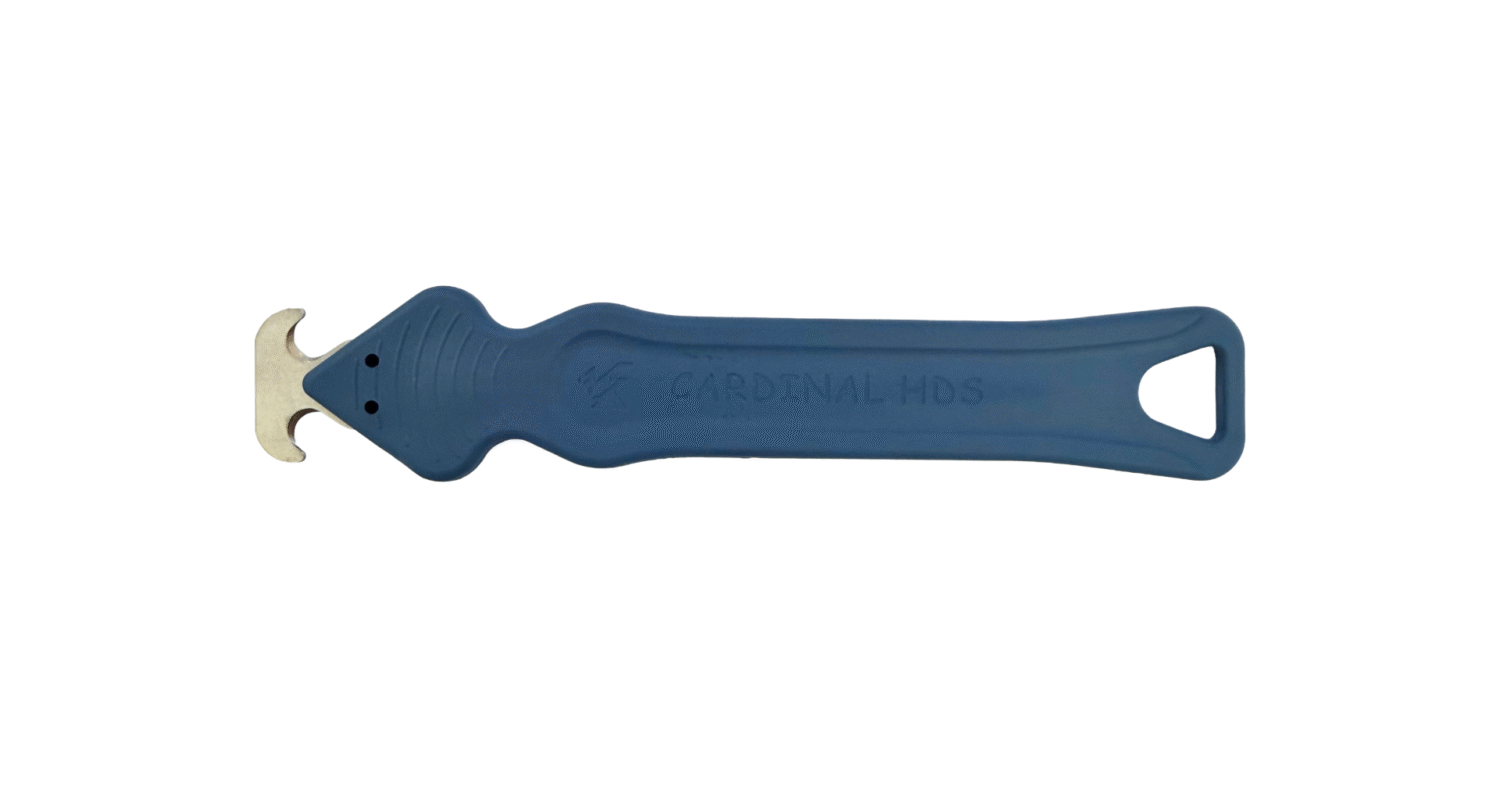 The Cardinal HDS is a safety cutter that can handle the toughest of cutting applications including abrasive materials while also eliminating material binding. It has a custom steel safety blade with a thicker design for added safety. It will cut anything from tape, plastic, zip ties, up to 1/4 inch thick cardboard and the list goes on.